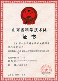 山東省人民政府授予公司李波總經(jīng)理“山東省有突出貢獻的中青年專家”榮譽稱號。